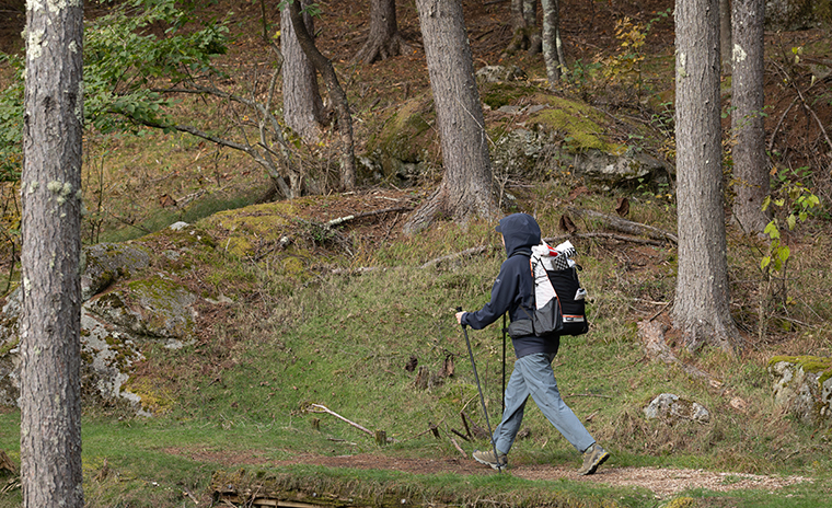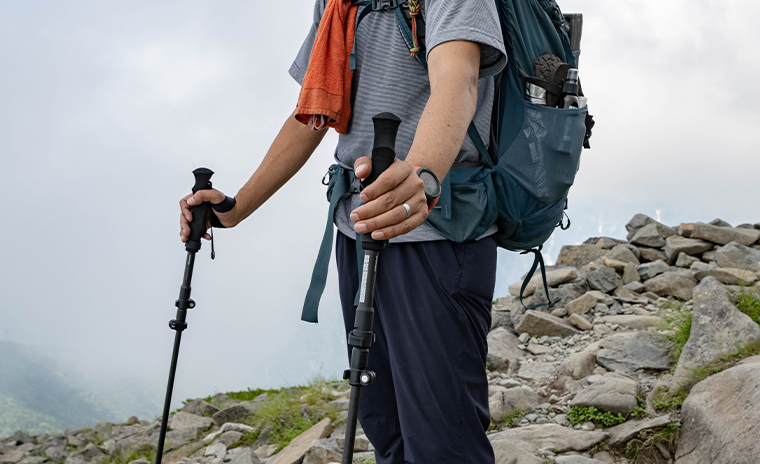 ストックを積極的に使用して長距離を移動するハイカーへ